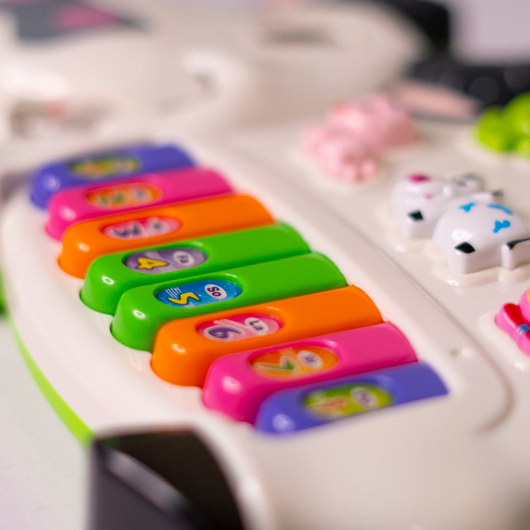 امروزه اکثر کودکان علاقه بسیار زیادی به سرگرمی های موزیکال دارند. از این رو شرکت های تولید کننده اسباب بازی در تولید اسباب بازی های موزیکال پیشرفت قابل ملاحظه ای داشته اند. یکی از اسباب بازی های محبوب دسته موزیکال، ارگ و پیانو است. اسباب بازی معرفی شده در این بخش علاوه بر سرگرم کردن کودکان می تواند جنبه آموزشی نیز داشته باشد. بر روی این اسباب بازی دکمه های مختلفی وجود دارد که با فشردنآنها انواع صداها (صدای انواع حیوانات و همچنین صدای نوزاد) و ملودی های بسیار جالب پخش می شوند. هر یک از دکمه های این ارگ قابلیت پخش 3 نوع صدا را دارد. انواع صداها از طریق فشردن بینی گاو برای دکه ها قابل تنظیم هستند. به طور مثال با یکبار فشردن دکمه بینی گاو تمامی دکمه های روی ملودی تنظیم می شوند که با فشردن هر یک از دکمه ها، ملودی زیبایی مرتبط با تصویر همان دکمه پخش خواهد شد. همچنین همزمان با نواخته شدن ملودی ها، در قسمت دم، چشم و زبان گاو رقص نور زیبایی به وجود می آید.با خرید این اسباب بازی موزیکال شادی و نشاط قابل توجه ای را به کودکان خود هدیه داده و سرگرمی و آموزش را در کنار هم برای آنها به ارمغان آورید.