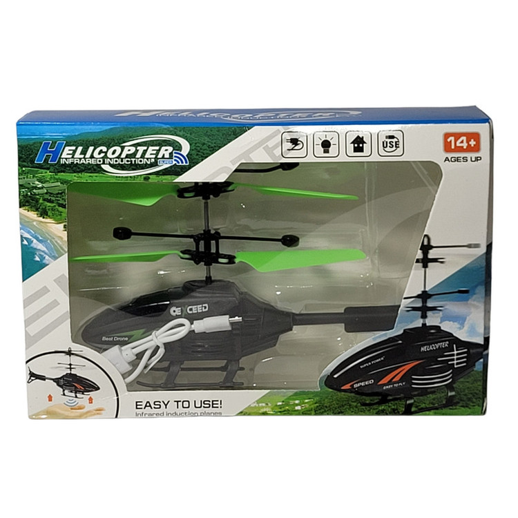 هلیکوپتر قابل پرواز دارای سنسور و با کمک دست قابل هدایت میباشد. این نوع هلیکوپتر هوشمند بوده و در صورت برخورد با اجسام خاموش میشود. همچنین این اسباب بازی دارای موتور قدرتمند فوق سبک و باطری قابل شارژ قدرتمند داخلی برخوردار می باشد و به کمک کابل USB در مدت زمان کم شارژ می شود.