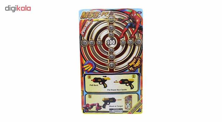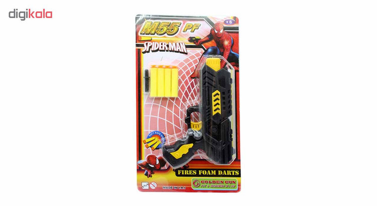 تفنگ اسباب بازی گلدن گان مدل M55 PF یک اسباب بازی هیجانی و کاملا بی خطر است. این تفنگ اسباب بازی دارای 4 عدد تیر فومی نرم است که سر تیر پس از شلیک به سطوح صاف و صیقلی مثل شیشه میچسبد. پشت مقوای بست بندی این تفنگ اسباب بازی طرح دارت چاپ شده است و جنس آن صیقلی بوده و میتوانید از آن به عنوان هدف برای نشانه روی و شلیک استفاده کنید. فنر به کار رفته در این تفنگ بسیار قوی بوده و طول پرتاب این تفنگ در مقایسه با نمونه های چینی بسیار زیاد است. با افتخار باید بگوئیم این تفنگ اسباب بازی ساخت ایران است و شما با خرید این اسباب بازی علاوه بر یک خرید با کیفیت و ارزان از کالای ایرانی و تولید ملی نیز حمایت خواهید کرد.