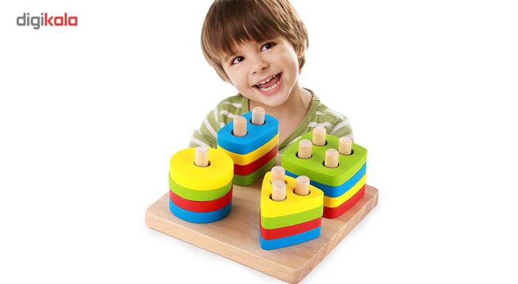 بازی پایه اشکال میله ای چهار شکل شامل یک صفحه مریع شکل به ابعاد 13 ×13× 1.3 سانتی متر بوده که از یک میله تا چهار میله به طور منظم روی آن نصب شده .چهار شکل هندسی دایره ، مثلث ، مستطیل و مربع (که بر روی هر کدام به همان ترتیب از یک سوراخ تا چهار سوراخ ایجاد شده ) در چهار رنگ زیبا ساخته شده و درون این میله ها قرار داده گرفته .این محصول بسیار زیبا و با کیفیت ساخته شده . مواد مورد استفاده شده در این محصول برای کودک کاملاً ایمن و بدون سرب بوده .خارج نمودن و جاگذاری مجدد قطعات در جایگاهشان یک چالش فکری بسیار عالی برای کودکان 2 تا 3 سال بوده و باعث هماهنگی سیستم عصب عضله شده و به دنبال خود باعث افزایش دقت و تمرکز دیداری نیز خواهد شد .کودک با حل این معمای زیبا احساس رضایت، استقلال و خودانگیختگی میکند و دارای نظمی درونی و خود خواسته میگردد. با توجه به اینکه کودک در این بازی بیشتر از انگشتان خود استفاده می نماید ، قدرت انگشتان و عضلات ریز دست تقویت می گردد.این محصول بسیار زیبا و با کیفیت ساخته شده . مواد مورد استفاده شده در این محصول برای کودک کاملاً ایمن و بدون سرب بوده .بازیهای فکری ساخته شده از چوب با هدف پرورش و تقویت مهارتهای شناختی و حل مسئله طراحی شدهاند. ماده طبیعی چوب که در ساخت این محصولات مورد استفاد قرار می گیرند موجب تاثیرات اخلاقی و روحی در ذهن و روان کودک شده و در نتیجه از پرخاشگری و تندخویی او جلو گیری کرده و موجب تعادل و تمرکز ذهنی میشود. طبیعی بودن الیاف چوب در بازی های فکری چوبی، حس کودک را برای لمس ، احساس و کشف تحریک میکند و دنیایی آرام تری را برای کودک و خانواده به ارمغان میآورد. بازیهای فکری ساخته شده با چوب به دلیل دوام و عمر زیادی که دارند، اغلب نسل به نسل منتقل میشوند.درکنار کودک ، شما پدر و مادر گرامی می توانید با این بازی فکری زیبا ساعات خوشی را برای کودک دلبندتان ایجاد نمایید.