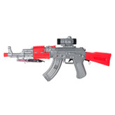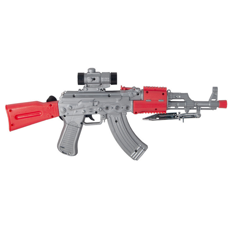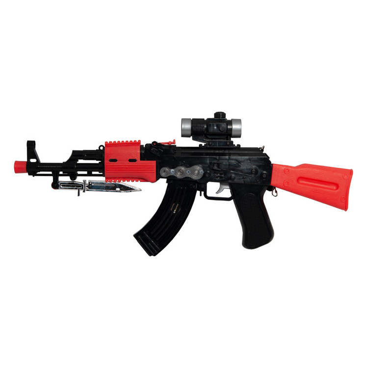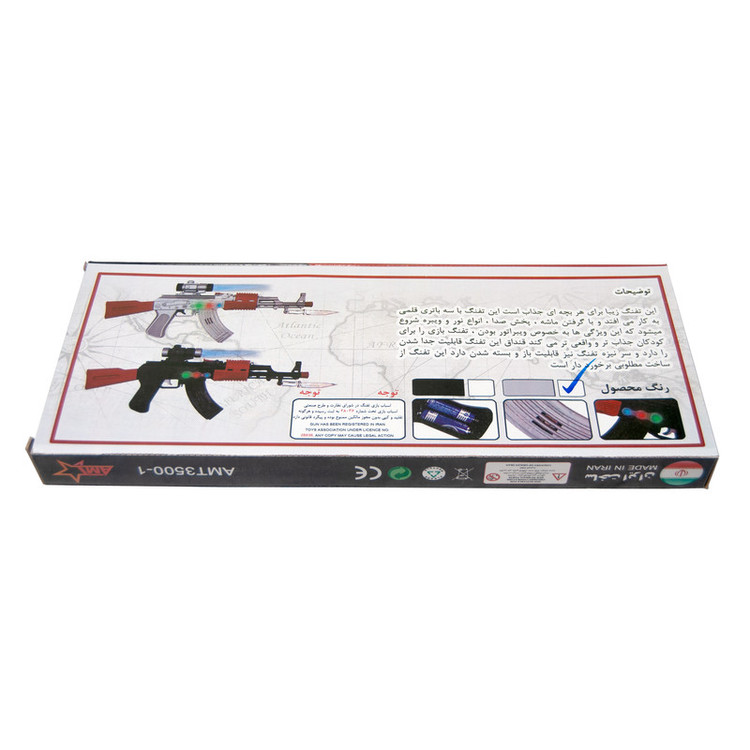 همانطور که میبیند پسربچه ها همیشه علاقه خاصی به فیلم و بازی های اکشن و پلیسی دارند و شاید بیشترین ارزوی پسر بچه ها اینه که در زمان بزرگ سالی پلیس بشوند. از این رو ابزارهای پلیسی از جذابیت خاصی بین پسر بچه ها دارا می باشد. تفنگ اسباب بازی ای ام تی مدل AMT3500-1 یکی از اسباب بازی های پلیسی می باشد. این محصول ساخته شده از پلاستیک فشرده و مقاوم است. تفنگ اسباب بازی ای ام تی مدل AMT3500-1 دارای باطری و چراغ های ال ای دی در دو طرف خود می باشد. با فشا ر دادن ماشه حالت صدای تک تیر و چند تیر ایجاد می شود. لازم به ذکر است که با فشار دادن ماشه علاوه بر ایجاد صدای تیر اندازی و لرزش تفنگ نوری از ناحیه دوربین روی هدف روشن می شود. این محصول دارای سر نیزه نیز می باشد. قنداق تفنگ اسباب بازی ای ام تی مدل AMT3500-1 قابلیت جدا شدن را دارد. این محصول در ابعاد استاندارد و وزن مناسب تولید شده و دارای طراحی خاص و نزدیک به مدل واقعی می باشد.