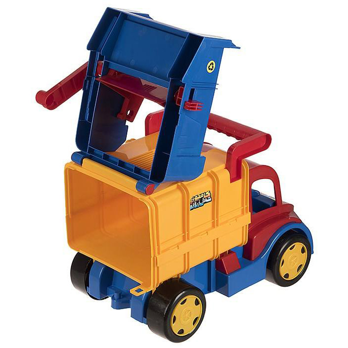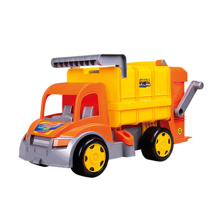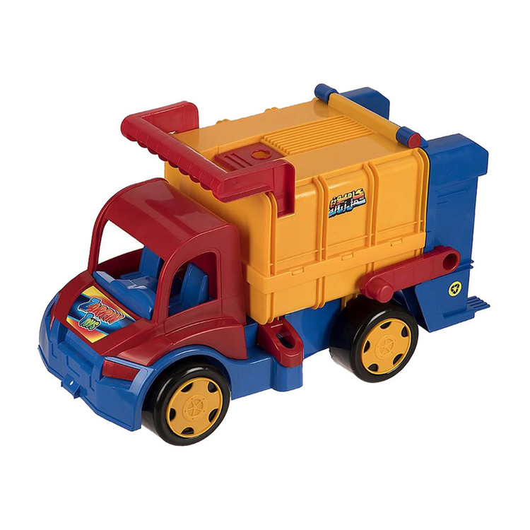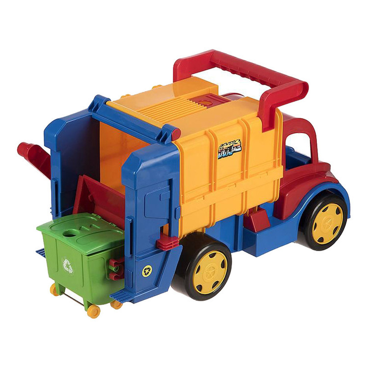 یکی از ماشینهایی که بچهها آن را بسیار دوست دارند، ماشینهای حمل زباله است. این کامیون برای کودکان بالای سه سال طراحی شده و به علت ظاهر رنگارنگ و کیفیت مناسب ساختش میتواند هدیهای مناسب برای بچههای بالای سه سال باشد. این ماشین 64سانتی، یک سطل زبالهی پلاستیکی همراه خود دارد که به علت داشتن چرخ در قسمت پایینیاش، میتوان آن را روی زمین حرکت داد. همینطور این سطل زبالهی 14.5سانتی، در دارد که بهراحتی باز و بسته میشود. با کمک دستهای که در قسمت پشتی ماشین قرار دارد، میتوان سطل زباله را داخل قسمت مخصوص آن خالی کرد. همچنین میتوان همانند ماشینهای زبالهی واقعی، سطل آن را توسط زبانههای کناری به کامیون وصل و سپس حرکت کرد.