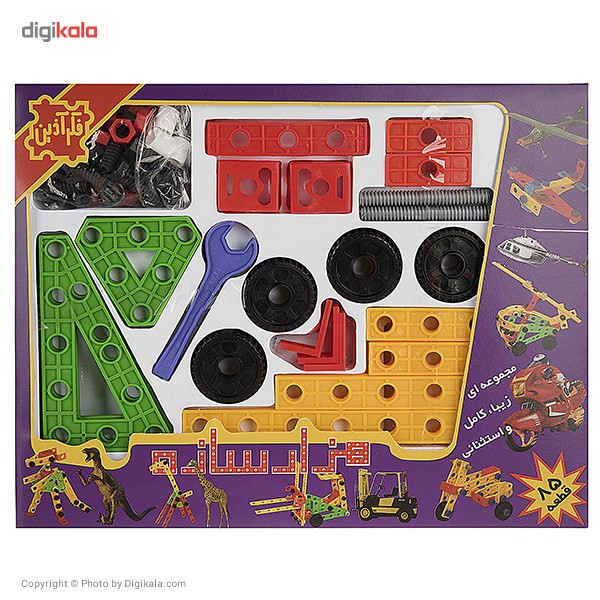 سایر توضیحاتبسته ساختنی فکر آذین دارای انواع قطعات پلاستیکی که توسط پیچ و مهره متصل میشوند - دارای قطعات چرخ برای ساخت انواع ماشین - آموزش و پیشرفت خلاقیت در بچهها - خطرناک برای سنین زیر 3 سال