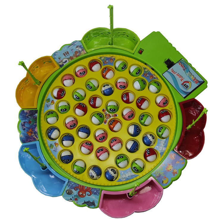 اسباب بازی ماهیگیری موزیکال یک اسباب بازی سرگرم کننده و شادی بخش برای کودکان می باشد. این اسباب بازی دارای قلاب ماهی گیری است. برای استفاده از این محصول ابتدا باید اسباب بازی ماهیگیری را روشن کنید تا مسابقه شروع شود، سپس مشاهده خواهید کرد که یک صفحه مدور همانند یک دریاچه کوچک در حال چرخیدن است و ماهی های رون آن دهانشان را باز و بسته می کنند، کودک شما باید یکی از قلاب ها را انتخاب کرده و همانند یک ماهیگیر، قلاب را بچرخاند تا یکی از ماهی ها به سر قلاب گیر کند تا آن را بیرون بکشد. هر بازیکنی که در انتها ماهی بیشتری شکار کند برنده است. بازی ماهیگیری به صورت انفرادی و چند نفره نیز قابل انجام است. جنس این اسباب بازی از پلاستیک مرغوب بوده و از رنگ های شاد برخوردار است به همین دلیل کودک شما را به خود جذب می کند. در حین بازی موزیک زیبایی پخش می شود که لحظات بازی کودک را لذتبخش تر می کند.