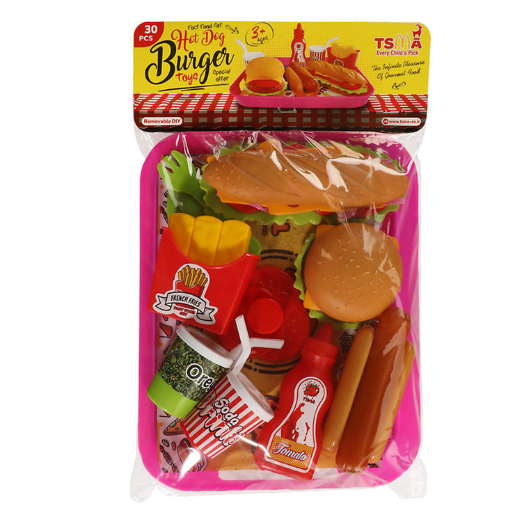 خلاصه روش بازی: ست مواد غذایی فست فود شامل 3 مدل ساندویچ . سیب زمینی . قاشق چنگال و کارد . سس و نوشابه
